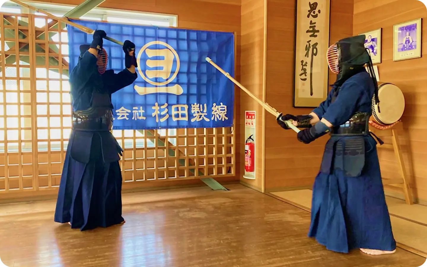 1937年(昭和12年)5月23日、当社の敷地内に初代道場が完成し、現在の道場は5代目となります。 いつの時代にも杉田製線には剣道場があり、杉田製線と剣道は切っても切れない関係となっています。 剣道との出会いは、創業者が健康のために勧められ、自宅近くにあった西久保弘道氏の道場(弘道館)に通うようになったことです。 毎日のように朝稽古に通い、3年もすると稽古が楽しいものとなり、体重も減り、精神的にも落ち着いて心身ともにすこぶる健康になって仕事にも打ち込めたといいます。 墨田区唯一の私設道場となっている5代目剣道場は、現在でも会社の剣道部をはじめ、近隣地域の皆さん、剣友会の皆さん等にも広く使用されています。